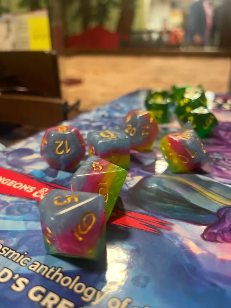 Dungeons and Dragons, commonly abbreviated as D&D or DnD, has remained perhaps the most widely known role-playing game since its original 1974 release. Created by designers Gary Gygax and Dave Arneson, its fantasy novel influences and use of individual characters distinguished it from its miniature wargame predecessors. In brief, it’s a storytelling game overseen by a Dungeon Master who guides players along on an imagined adventure. Each player assumes a different character who possesses certain abilities, such as an orc who fights well or a wizard adept at spellcasting. As the game progresses, players add to the story, rolling polyhedral dice to determine outcomes.